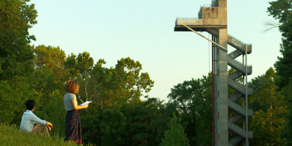 kitaptan sonra bir film izledim; yönetmeni kogonado olan 2017 yapımı columbus filmiydi bu. yukarıdaki fotoğraf filmden. modern mimarisiyle ünlü columbus kentinde geçen filmde, mimarlık profesörü olan babası komaya girince şehre gelen jin ile annesine bakmak zorunda olduğu için hayallerini erteleyen casey’nin yolları kesişiyor. bu ikili şehrin modernist yapıları arasında dolaşırken mimari, hayat seçimleri ve aidiyet üzerine konuşuyorlar bol bol, bazen de uzun uzun susuyorlar… film kendini gerçekleştirme korkusu, beklemek ve hayatı ertelemek, mekân ile ruh hâli arasındaki ilişki, anne ve baba bağları gibi temalar arasında uzun sessizlikler, görüntüler ile akıp gidiyor. film az sayıda karakter, az sayıda olay ve çok da uzun olmayan konuşmalarla her şeyi anlatmıyor, hissettiriyor…