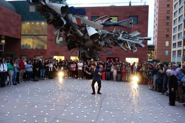 bu performanlardan birinde gözleri kapalı biri dikkatle, bu kırılgan alanın içinden yürümeye başlıyor. izleyenler ise etrafında duruyor, arada görünmez bir sınır var, içeri girmek mümkün ama riskli, her adım, bir yumurtayı kırma ihtimali taşıyor; bir gerilim alanı burası. yumurtalar sadece birer nesne değil; kırılma, parçalanma, kirlenme, zarar görme, düşme ihtimaline de kapı açıyor!